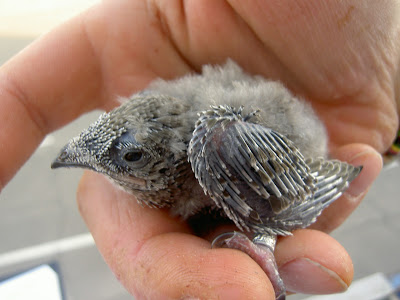 pleca, en todo caso un gorrion mutante XD, date cuenta el tamaño que tiene el polluelo en la mano de la chica, un gorrion es la mitad de eso |
