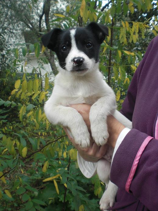 No me considero un experto, pero algo de perros si entiendo. Lo primero que te queria comentar es que los perros hasta que se forman cambian algo, durante el crecimiento se puede apreciar desproporción en algunas partes de su cuerpo. Respecto a tu perro, creo que puede tener algo de Perro Bodeguero Andaluz o similar, aunque se aprecia el pelo un poco mas duro que el del Bodeguero, el plante de las orejas, la forma de la cabeza, la talla, indican que es un pero similar al Bodeguero, pero como te he comentado, hasta que el perro no tenga unos 9 o 10 meses no podras determinar con mas exactitud cual es su ascendencia. |