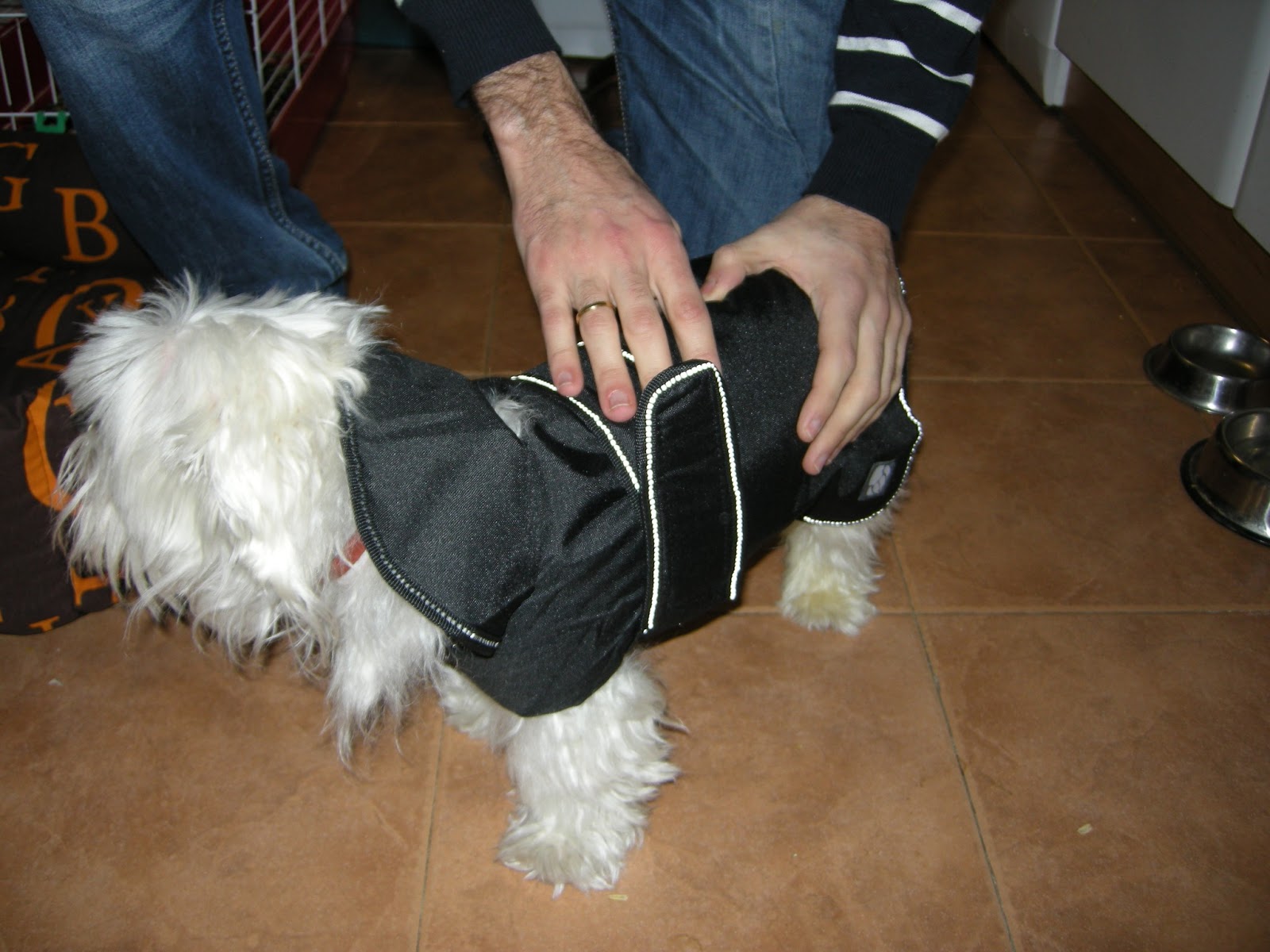Bueno, yo maja, lo que se dice maja no soy pero sí me gusta ayudar a los dueños majos . Con un par de cepilllados a la semana y una pasada con toallitas húmedas te aguantará muy bien el mes entero. Yo tengo una Bóxer que ademas de marrana (le encanta hacer la croqueta en cesped humedo y luego en tierra, es como una croqueta simpática) por su morfología babea cuando juega o tiene calor y yo la baño cada tres o cuatro semanas. Tu perro se manchará menos que la mía casi seguro. Yo creo que con una vez al mes y siempre que esté sucio (si se ha restregado o metido en lugares inadecuados) será suficiente. Mi perra tiene un chubasquero para la lluvia, como dices, este modelo pero tamaño Bóxer http://2.bp.blogspot.com/-JeUONRJfXEE/UQbDl5oHgsI/AAAAAAAAAlE/-SReg9lPkdQ/s1600/DSCN6620.JPG |
