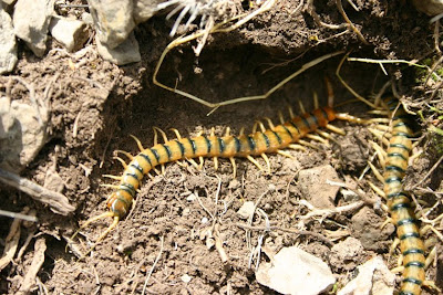 La especie que suele haber por aquí es Scolopendra cingulata, el año pasado cogí una para un trabajo. Son unos bichos muy... majos. A mi suegra le picó una en el pecho durmiendo en la aldea que tienen por el Peñagolosa. Una maravilla, hoyga, que no hay médico en 50km a la redonda. |